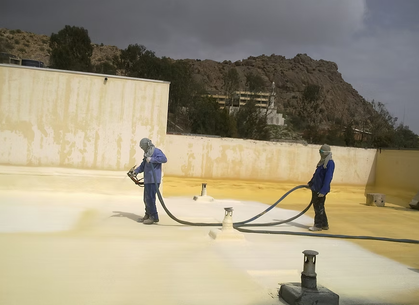 It is a mixture resulting from mixing polyol and isothiocyanate together, and it is one of the best products used in thermal insulation due to the quality of insulation, as the total thermal conductivity is the lowest compared to other insulating materials, as it reaches (0.02 watts/meter Kelvin at a temperature of 25 degrees Celsius). Thus, it works to reduce the transfer of heat from the external environment to the internal atmosphere and vice versa, which maintains the building’s coolness and reduces the energy needed for cooling and heating.